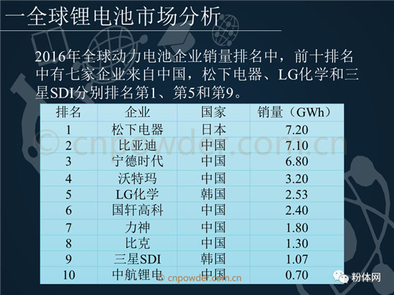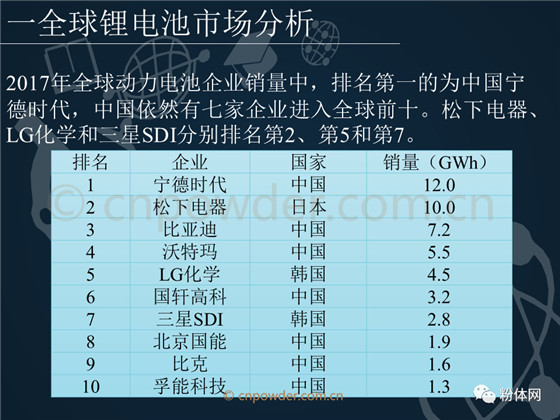 2017年全球動力電池企業銷量中,排名第一的為中國寧德時代,中國依然有七家企業進入全球前十。松下電器、LG化學和三星SDI分別排名第2、第5和第7。本文詳細介紹了以上公司的綜合實力、對比分析等。