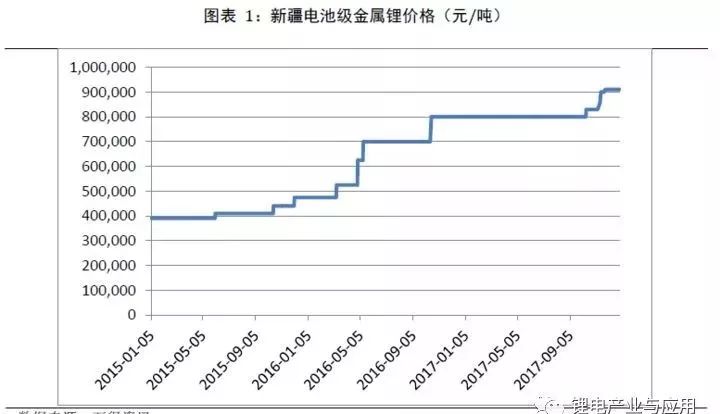 以新疆電池級金屬鋰價格為例,在近3年從40萬元/噸上漲到90萬元/噸,漲幅高達120%。