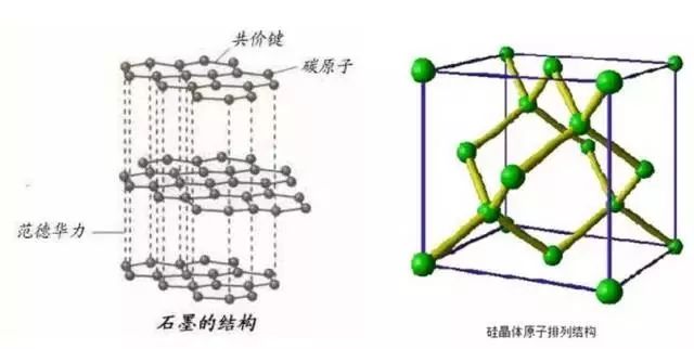 硅的結構和石墨層狀結構不同(如下圖),其儲能機理也與金屬材料類似是通過與鋰離子的合金化和去合金化進行的,其充放電電極反應可以寫作下式: