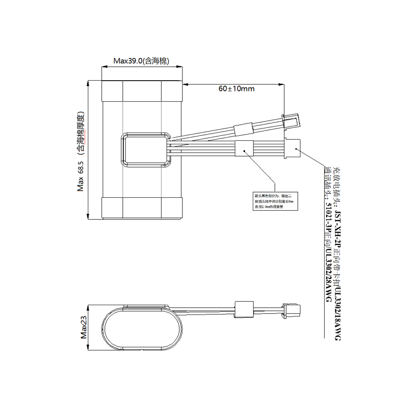 電池尺寸:23*39*68.5mm
